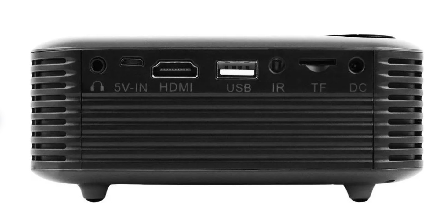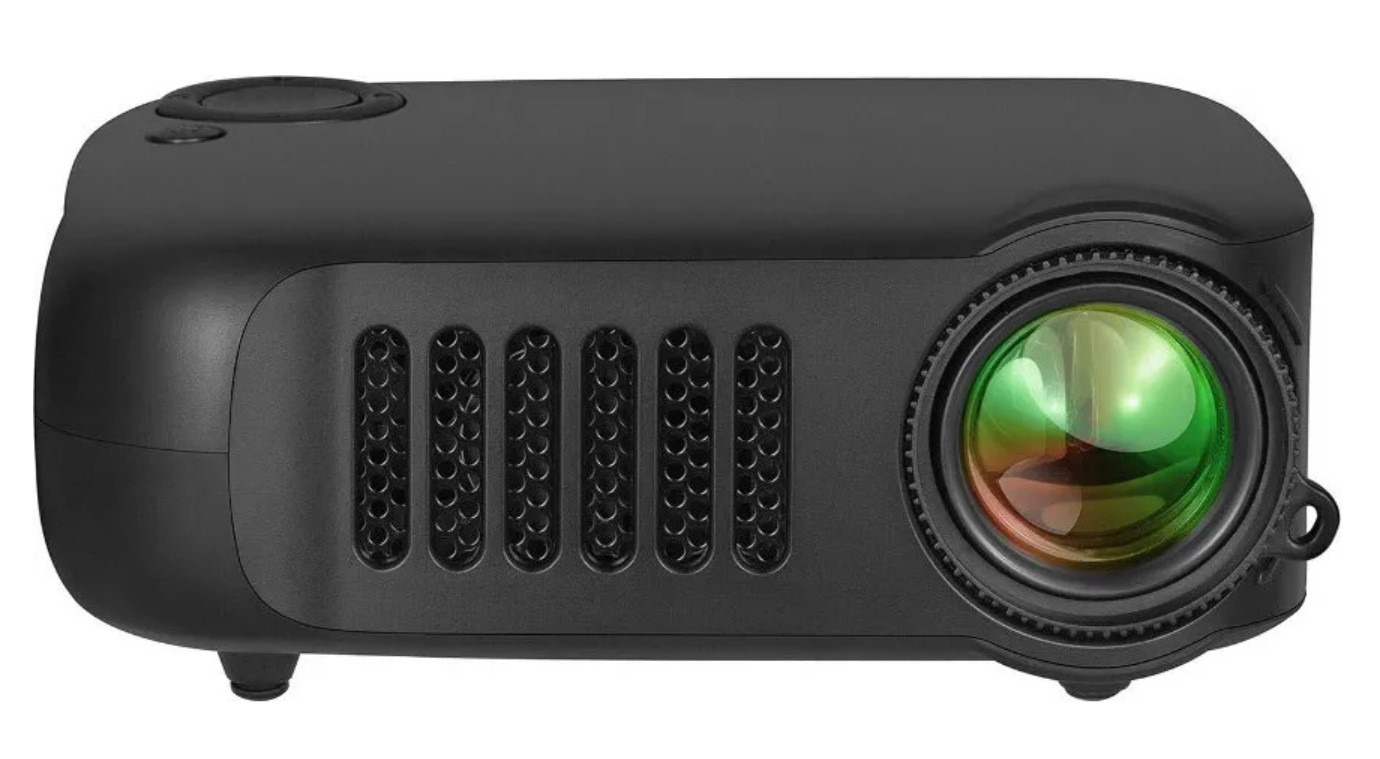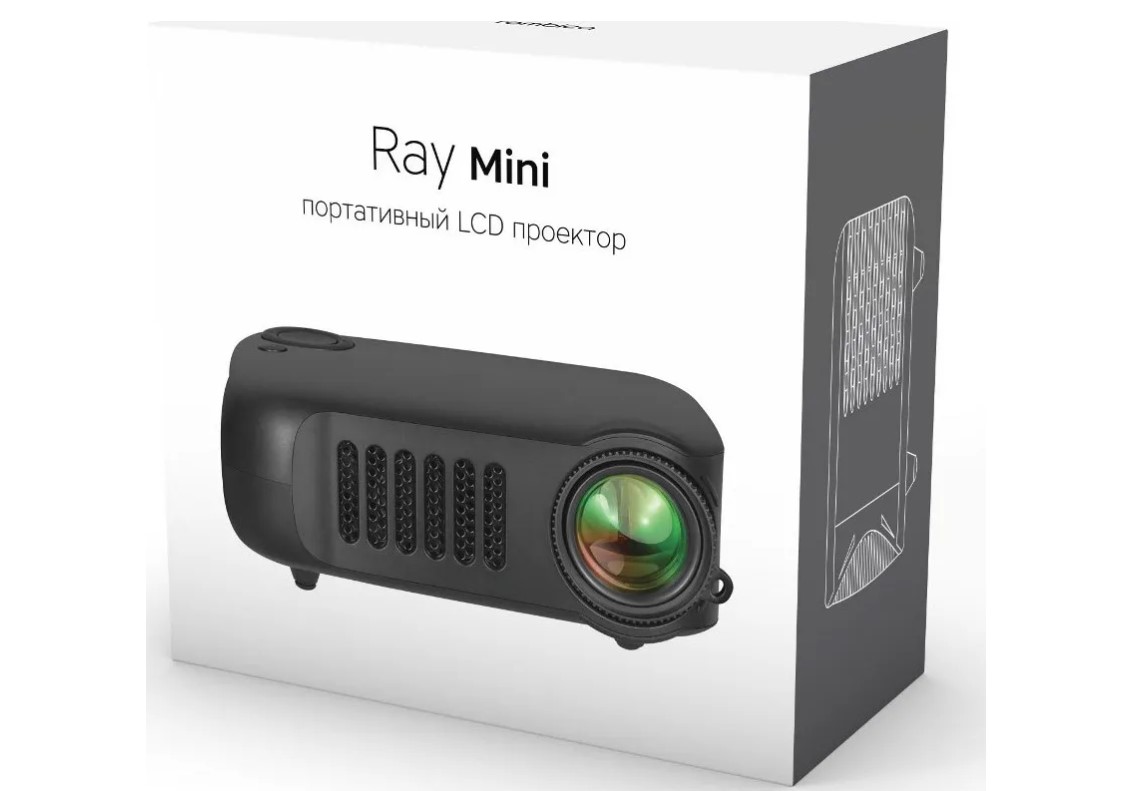 Портативный проектор Ray Mini хорошо подойдет для просмотра фильмов и мультфильмов с небольших расстояний до двух метров. Может работать от внешнего аккумулятора и позволяет не привязываться к выбору места. Устройство воспроизводит файлы с USB-носителя или карты памяти microSD, а также к нему можно подключить ноутбук через HDMI. В комплекте имеется пульт ДУ и тренога-подставка
