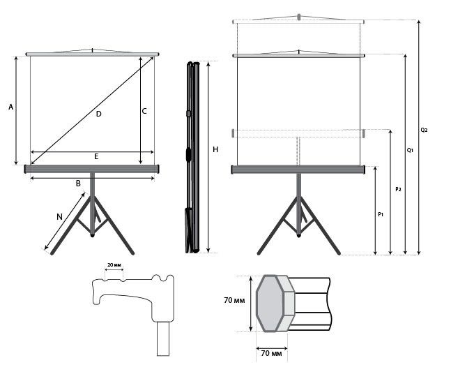 Размеры экрана (ШхВ) 180×180 см