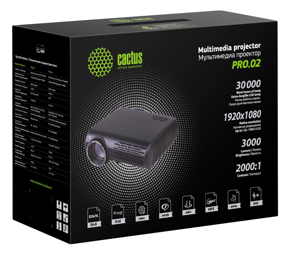 Проекторы Cactus специально разработаны для представления в доступном ценовом сегменте, а также для того, чтобы предложить потребителю оптимальный продукт в соотношении цена-качество.