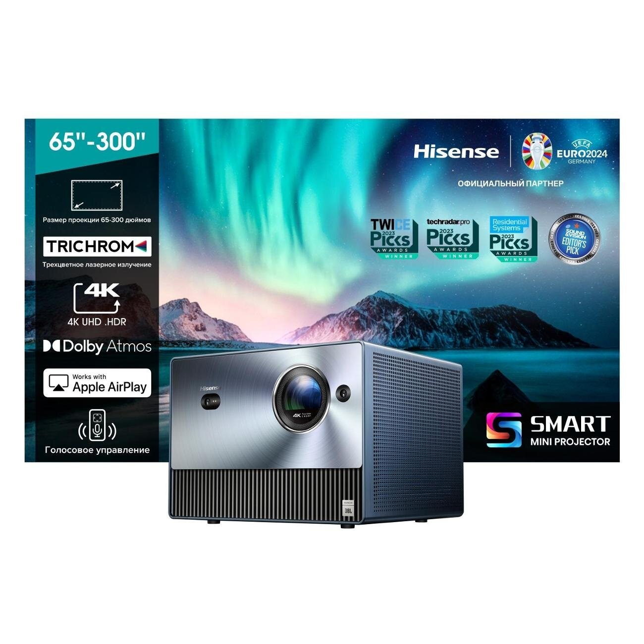 Технология - Miracast; Bluetooth 5.0; Потолочное крепление; Подключение к сети LAN; Дистанционное управление; Встроенная акустическая система; Технология Wi-Fi Direct; Возможность обратной проекции; Воспроизведение медиафайлов с цифровых носителей; Воспроизведение через Wi-Fi; Голосовой помощник Алиса; Встроенная память 8 ГБ; Комплектация: Кабель HDMI