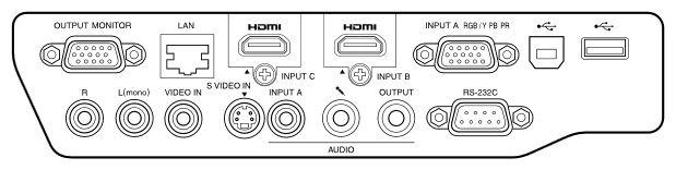 Интерфейсы входа: USB (тип A), USB (тип B), VGA (D-Sub), 2 x HDMI, S-Video, RJ-45, RS-232, аудио mini Jack, аудио RCA, композитный, компонентный