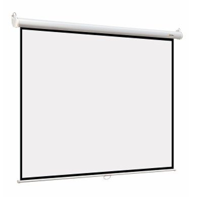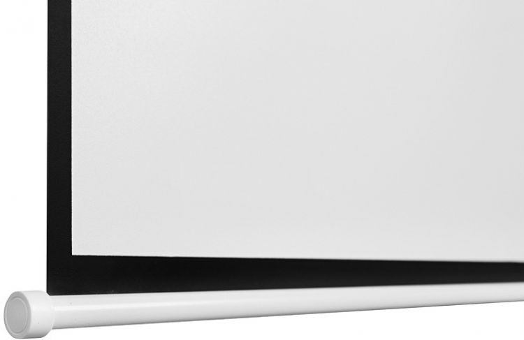 Особенности: Ручной привод. Механизм застопоривания для выбора нужного формата и высоты проекции. Настенное и потолочное крепление. Наличие чёрной светопоглащающей каймы для улучшения восприятия яркости изображения. Ровная гладкая поверхность экрана. Отсутствие швов на проекционной поверхности.