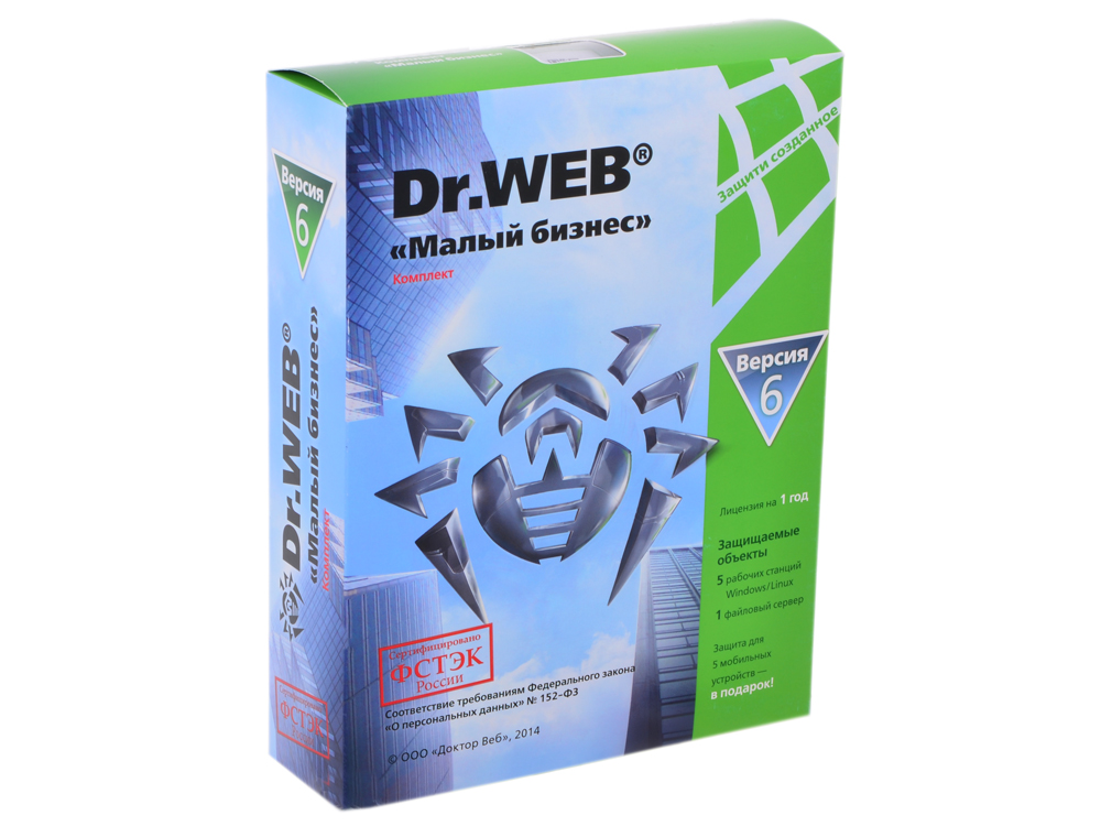 Описание Использование Dr.Web «Малый бизнес» позволяет обеспечить надлежащее выполнение требований норм законодательства РФ о применении мер для защиты: информации с ограниченным доступом (государственная тайна, персональные данные и т.д.); отдельных категорий граждан от информации, причиняющей вред.