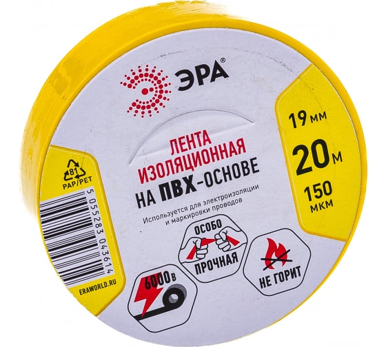 Преимущества пвх изолента ЭРА 19ммx20м желтая