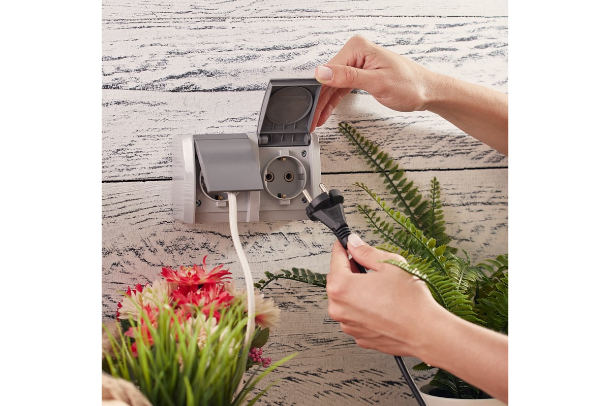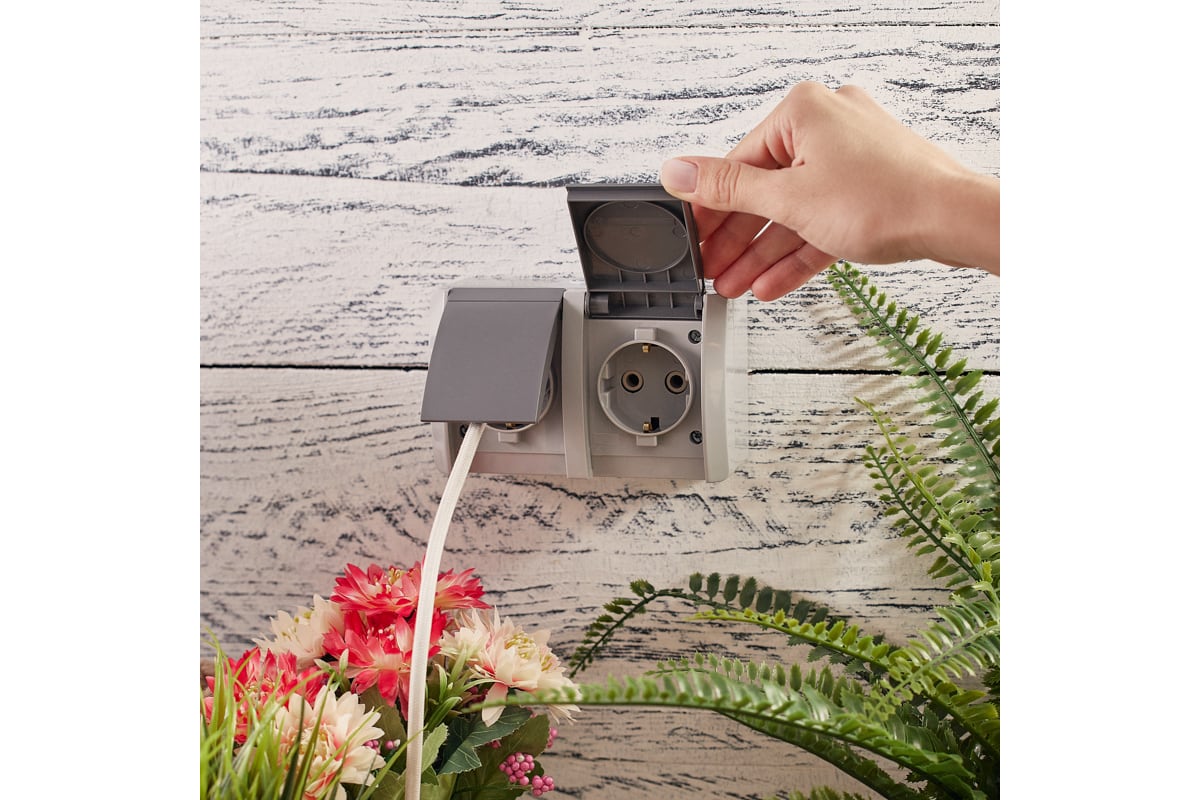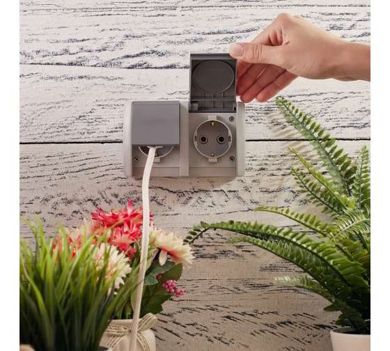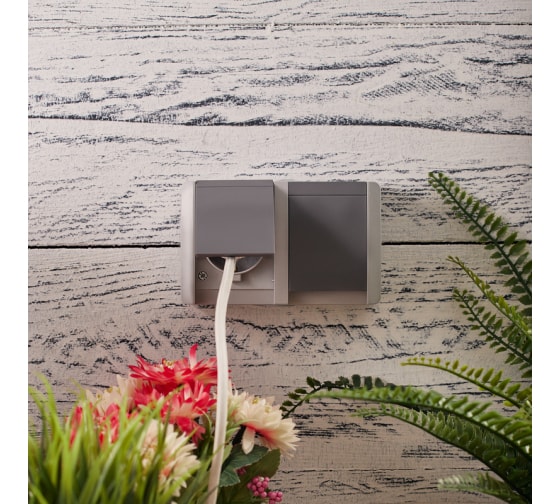 Двойная накладная розетка KRANZ керамика, горизонтальный блок с/з IP54 16А серая KR-78-0614 предназначена для организации электроснабжения не только в сухом помещении, но и во влажной и пыльной среде.