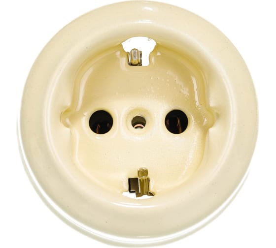Розетка Retrika, керамическая, ретро с заземляющим контактом, слоновая кость RS-80005 используется для наружного монтажа электропроводки в ретро-стиле в интерьерах домов, квартир и коттеджей.