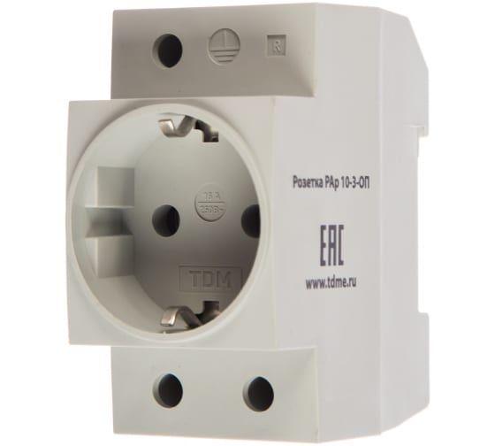 Розетка с заземляющим контактом TDM Shuko РАр10-3-ОП SQ0209-0001 используется для установки на DIN-рейку в распределительный щит. Устройство служит для подключения электрических приборов, например: переносных ламп, блоков питания и пр. Также можно подключать электрический инструмент малой мощности для проведения небольших электромонтажных работ по месту установки.