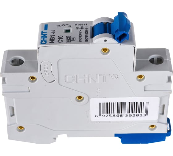 Автоматический выключатель CHINT NB1-63 1P 10A 6кА характеристика C 179614 используется для защиты распределительных и групповых цепей от перегрузок и короткого замыкания. Применяется во вводно-распределительных щитах жилых и административных зданий или в промышленности.