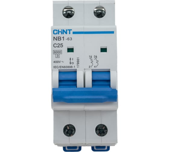 Технические характеристики CHINT NB1-63 2P, 25A, 6кА, характеристика C 179661