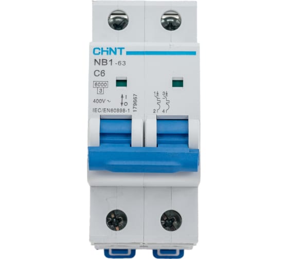 Технические характеристики CHINT NB1-63 2P, 6A, 6кА, характеристика C 179667