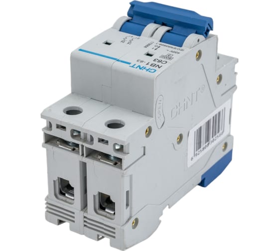 Автоматический выключатель CHINT NB1-63 2P 63A 6кА характеристика C 179668 используется для защиты распределительных и групповых цепей от перегрузок и короткого замыкания. Применяется во вводно-распределительных щитах жилых и административных зданий или в промышленности.