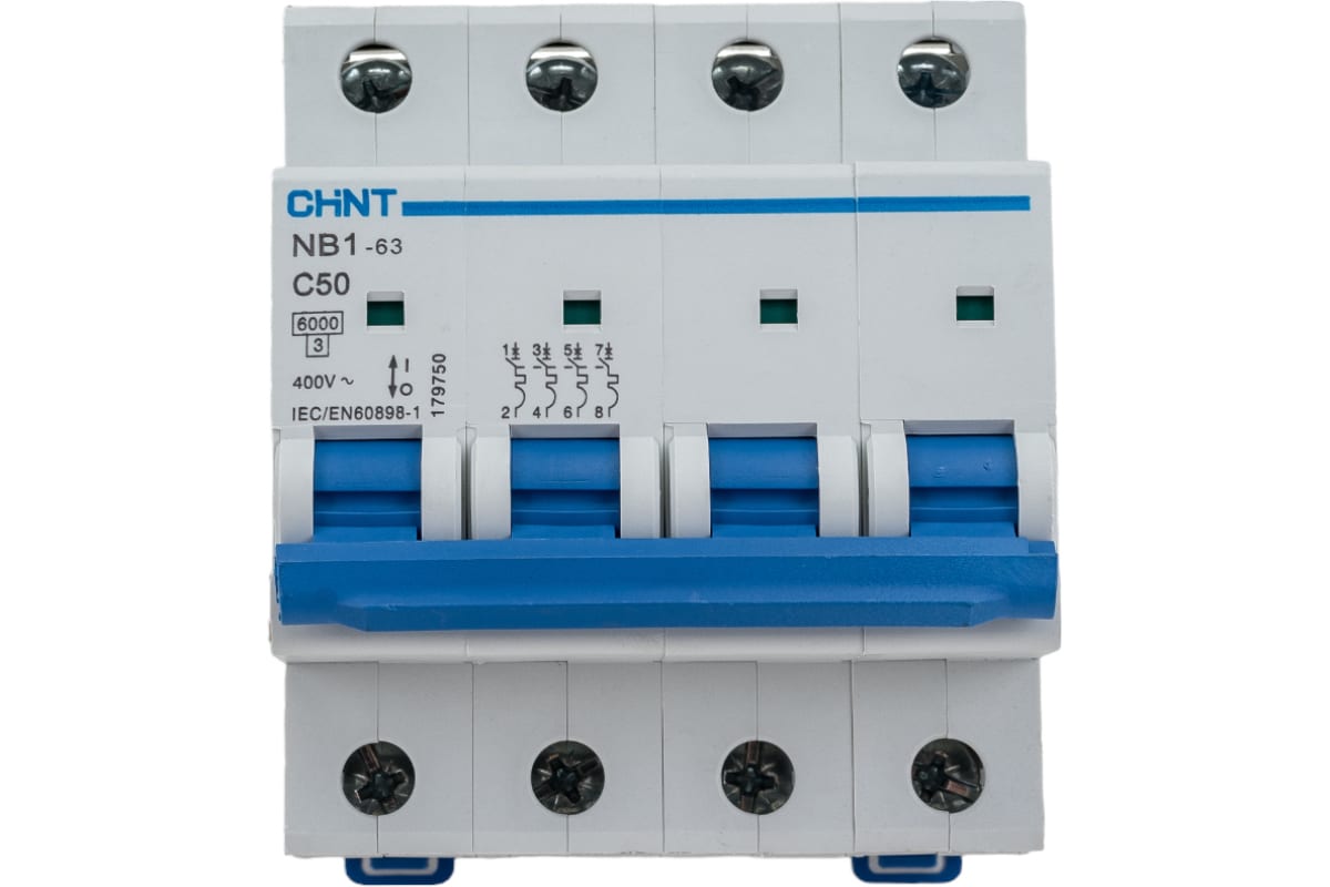 Технические характеристики CHINT NB1-63 4P, 50A, 6кА, характеристика C 179750