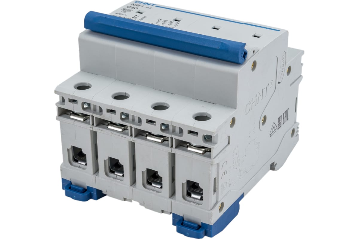 Автоматический выключатель CHINT NB1-63 4P 50A 6кА характеристика C 179750 используется для защиты распределительных и групповых цепей от перегрузок и короткого замыкания. Применяется во вводно-распределительных щитах жилых и административных зданий или в промышленности.