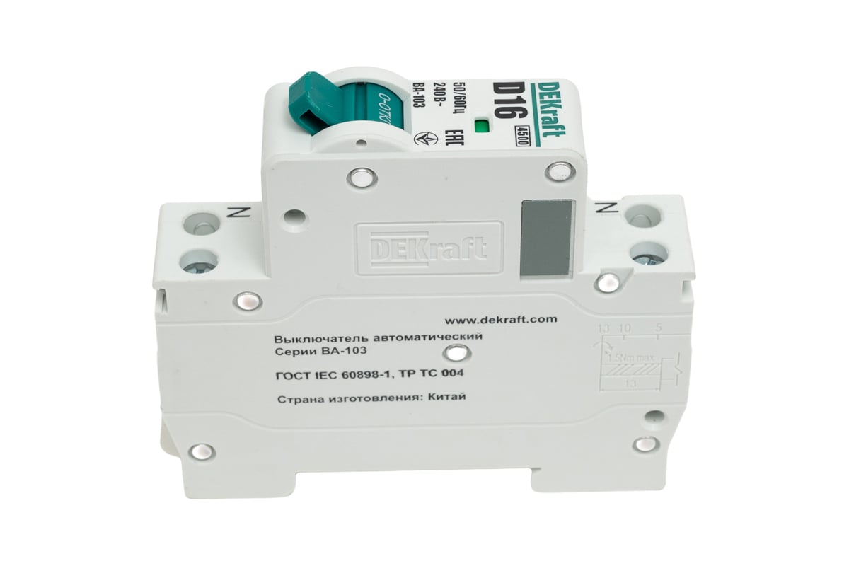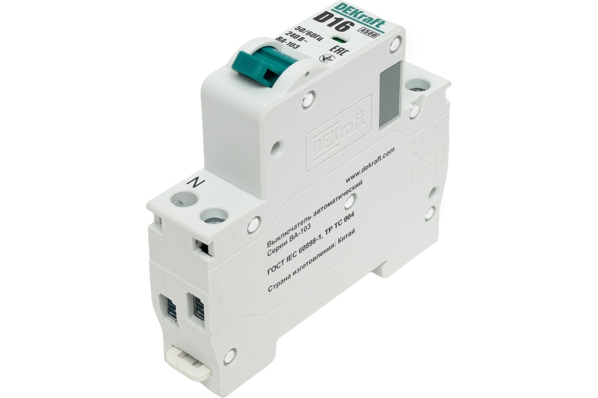 Автоматический выключатель DEKraft 1+n 16а х-ка d ва-103 4,5ка 12409DEK служит для защиты электрических цепей от перегрузок и токов короткого замыкания. Применяется в распределительных, учетно-распределительных, телекоммуникационных щитах и др. в жилищном, гражданском строительстве, сельском хозяйстве, инфраструктуре объектов промышленности.