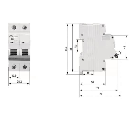 Технические характеристики EKF AV-10 AVERES 2P 32A 10kA mcb10-2-32B-av