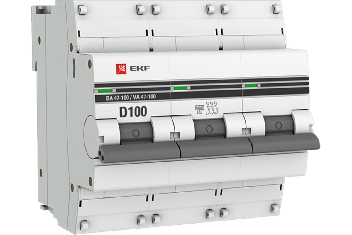 Технические характеристики EKF PROxima 100А D ВА47-100 10кА mcb47100-3-100D-pro