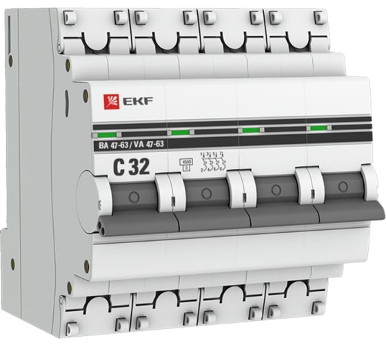 Преимущества EKF PROxima ВА 47-63 4P, 32А, C, 4,5kA mcb4763-4-32C-pro