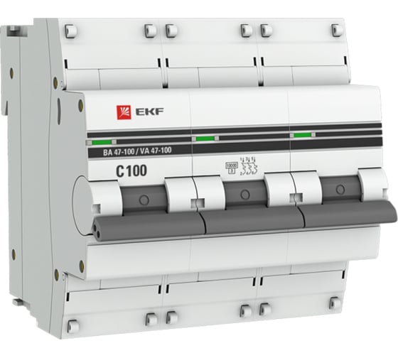 Преимущества EKF PROxima 100А С ВА 47-100 10кА mcb47100-3-100C-pro