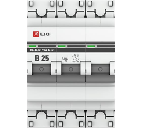 Автоматический выключатель EKF 3P 25А В 4,5kA ВА 47-63 PROxima mcb4763-3-25B-pro - механический коммутационный аппарат соответствуют ГОСТ Р50345-2010.