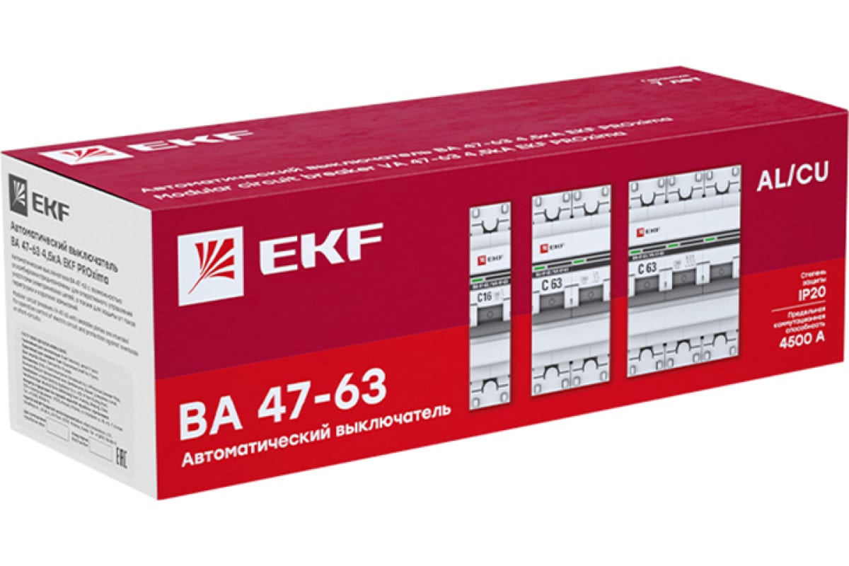 Технические характеристики EKF ВА 47-63 PROxima 3P 25А В 4,5kA mcb4763-3-25B-pro