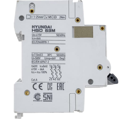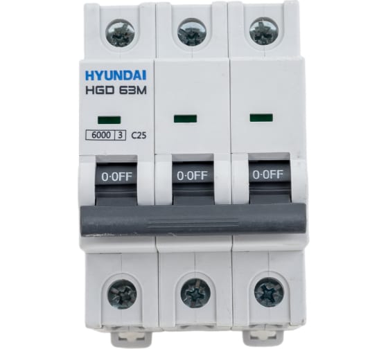 Автоматический выключатель Hyundai HGD63-M 3PMCS0000C 00025 3п, 25А, 6kA, хар-ка C 13.04.000890 имеет компактную конструкцию и элегантный внешний вид.