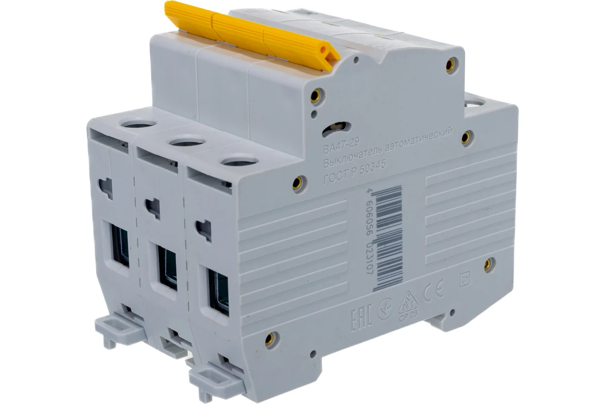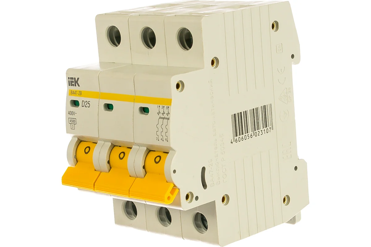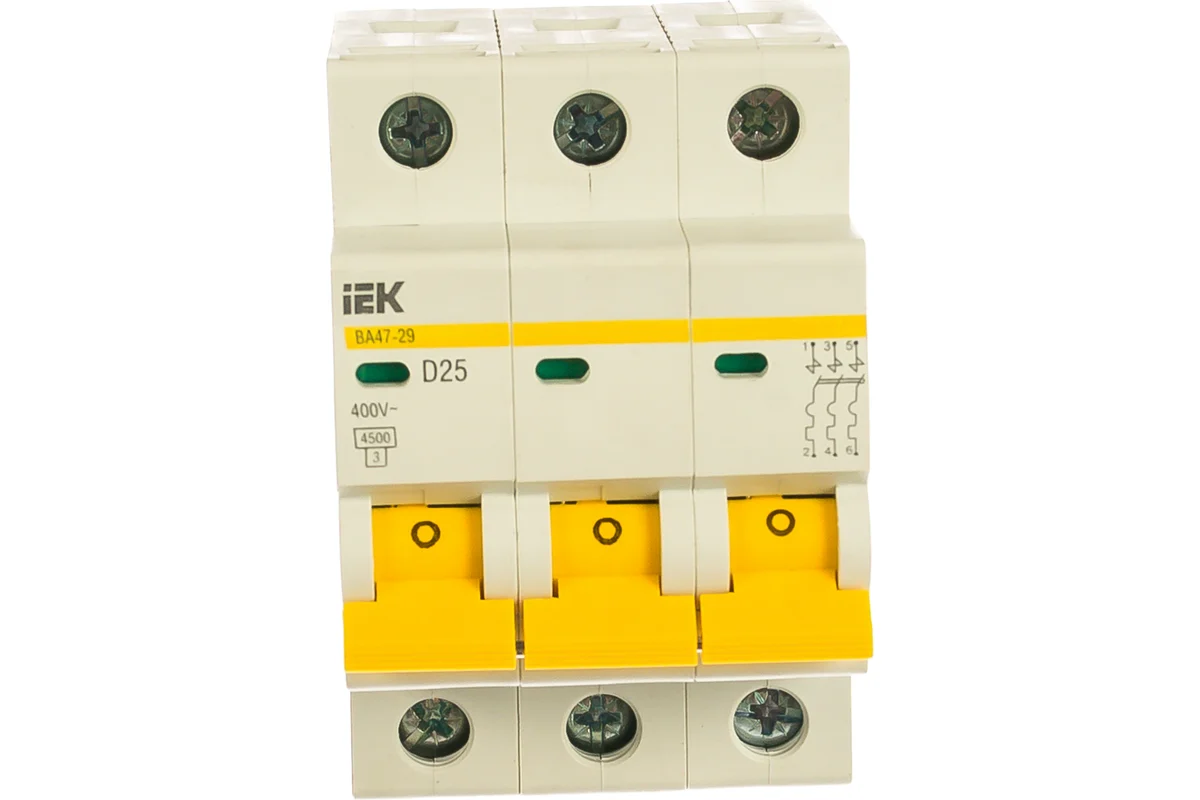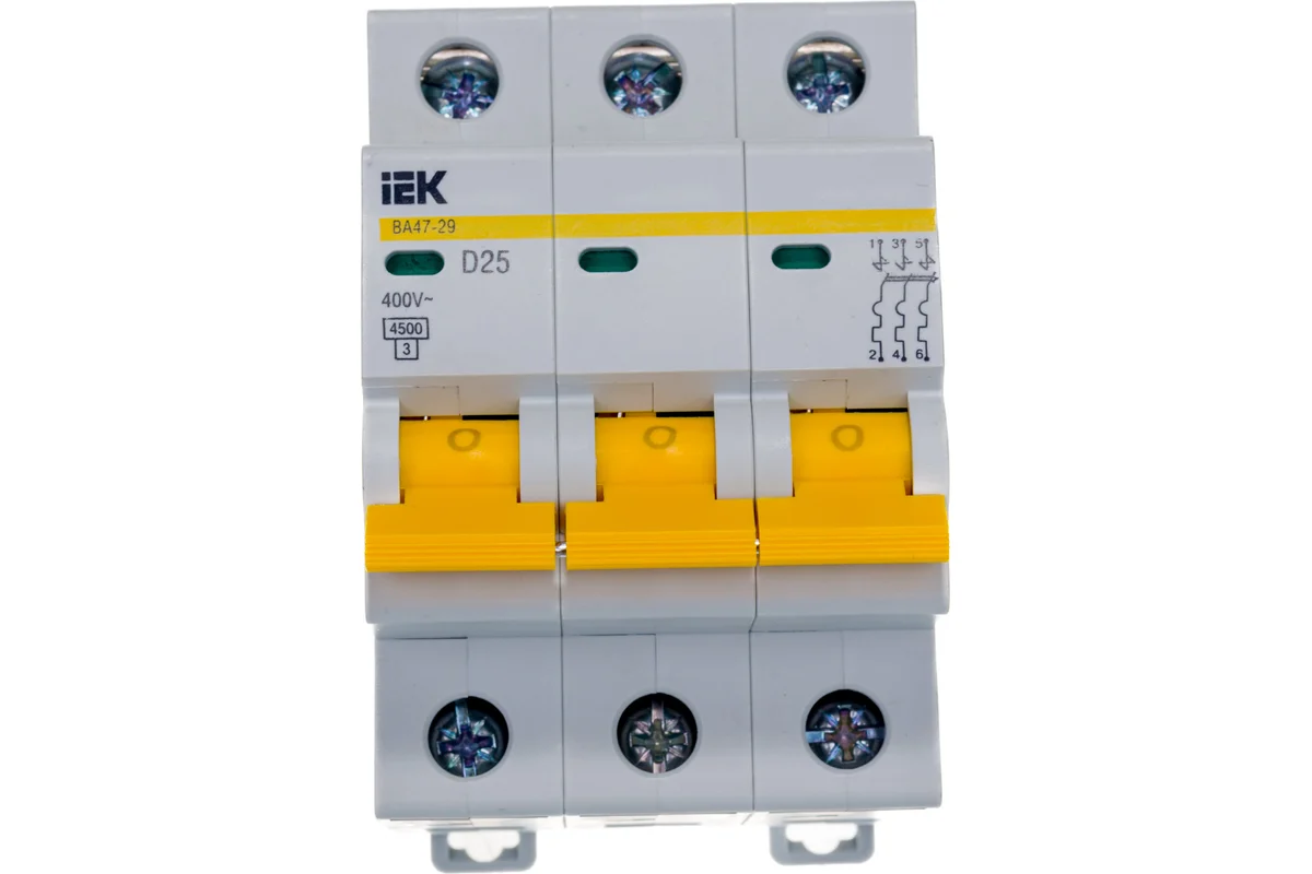 Технические характеристики IEK ВА47-29 3п, D, 25А, 4.5кА MVA20-3-025-D