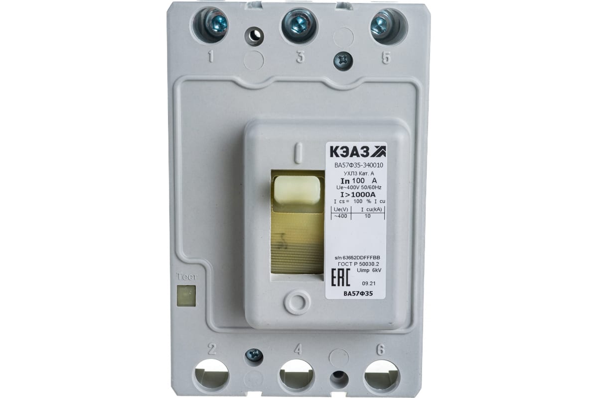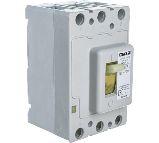 Автоматический выключатель КЭАЗ ВА57Ф35-340010-100А-1000-400AC-УХЛ3-КЭАЗ 109286 - трехполюсный коммутационный аппарат в литом корпусе. Предназначен для проведения тока по электроцепи в нормальном режиме и защиты различного оборудования от перегрузок и короткого замыкания.
