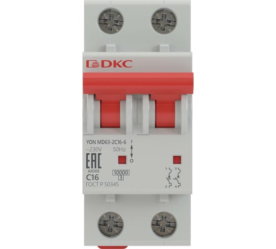 Автоматический модульный выключатель DKC YON MD63 2P 10А C 10kA MD63-2C10-10 номиналом 10 A с характеристикой расцепителя "C" и отключающей способностью 10 кА предназначен для применения в электрических цепях напряжением до 400 В переменного тока частоты 50 Гц, их защиты при перегрузках и коротких замыканиях, проведения тока в нормальном режиме и оперативного включения и отключения указанных цепей. К выключателю могут присоединяться независимый расцепитель в отдельном модуле и вспомогательные контакты в отдельном модуле. Независимый расцепитель и вспомогательные контакты заказываются отдельно и устанавливаются на выключатели потребителем по мере необходимости.