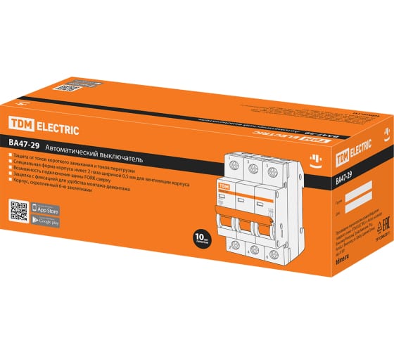 Преимущества TDM ВА47-29 3Р, 63 А, 4,5 кА, С SQ0206-0115