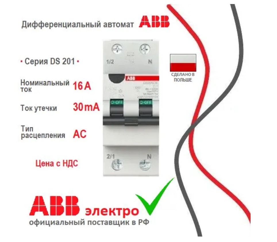 Наименование товара производителя Выключатель авт.диф.т.DS201CR C16 AC30