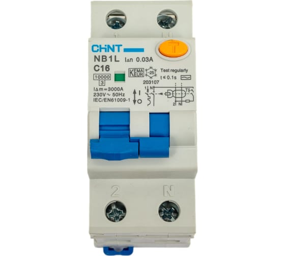 Технические характеристики CHINT NB1L 1P+N, C16, 30mA, тип AC, 10kA, 36mm 203107