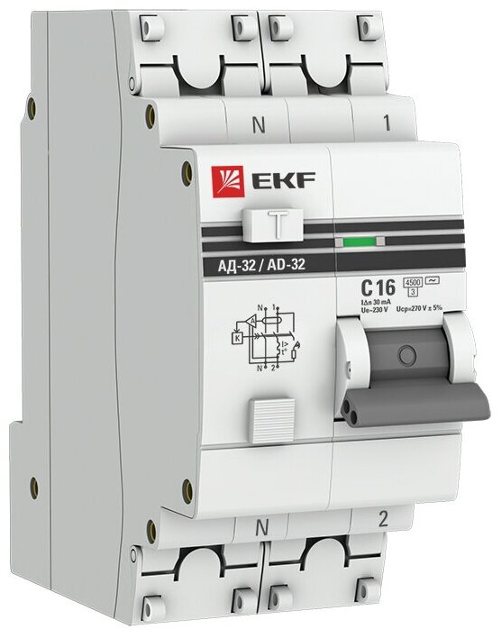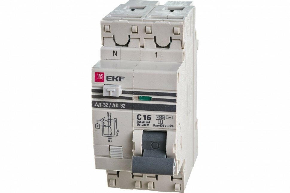 Дифференциальный автоматический выключатель АД-32 2P AC16 30 mA сочетает функции автоматического выключателя с устройством защитного отключения. Защищает от поражения электрическим током при случайном прикосновении к открытым проводящим частям электроустановки. Автоматическое отключение участка электрической сети при перегрузках и коротких замыканиях. Реагирует на синусоидальный переменный ток утечки.