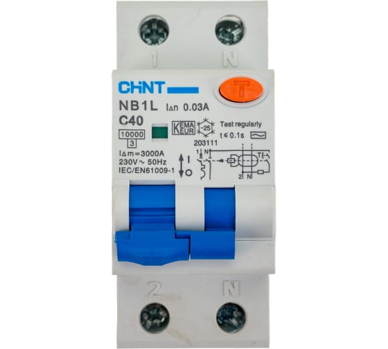"Дифференциальный автоматический выключатель CHINT, NB1L, 1P+N, C40, 30mA, тип AC, 10kA, 36mm 203111" - быстродействующий защитный выключатель, реагирующий на дифференциальный ток, со встроенной защитой от сверхтоков.