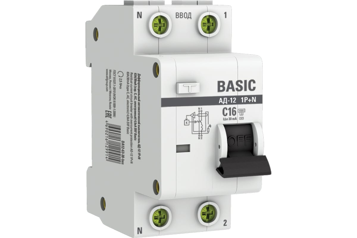 Технические характеристики EKF АД-12 1P+N 16А 30мА тип АС х-ка C эл. 4,5кА DA12-16-30-bas