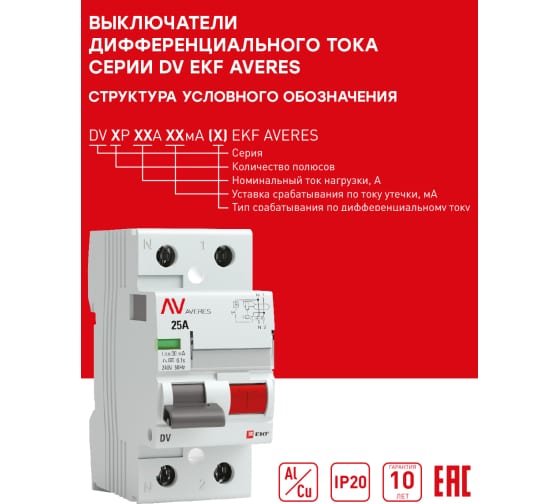 Преимущества EKF DV AVERES 2P, 40А/30мА, A rccb-2-40-30-a-av