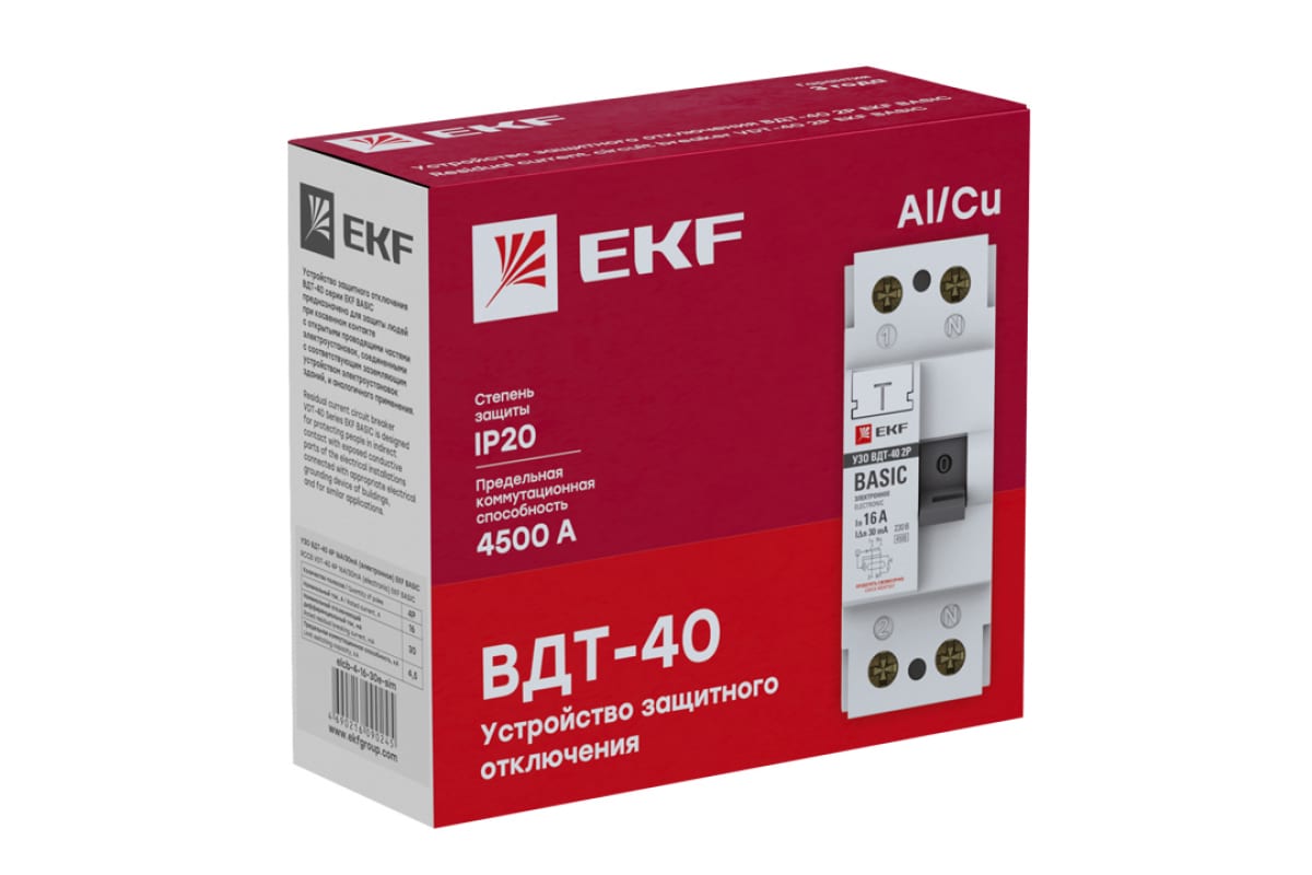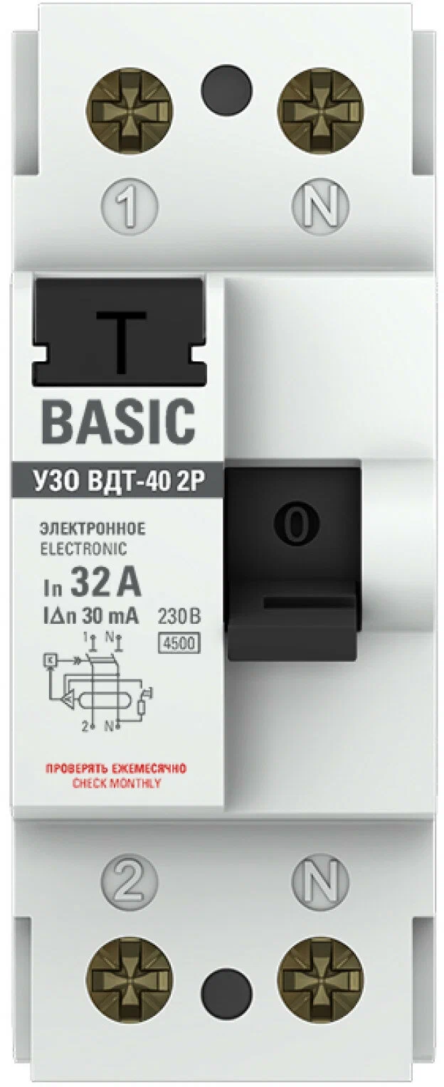 Технические характеристики EKF Basic 2P 32А/30мА elcb-2-32-30e-sim