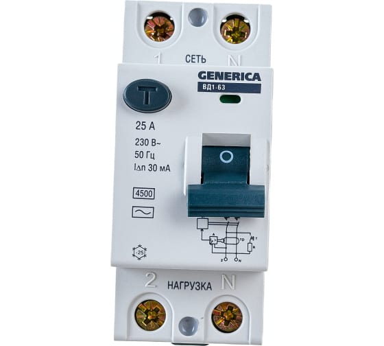 Технические характеристики GENERICA УЗО ВД1-63 2Р 25А 30мА MDV15-2-025-030