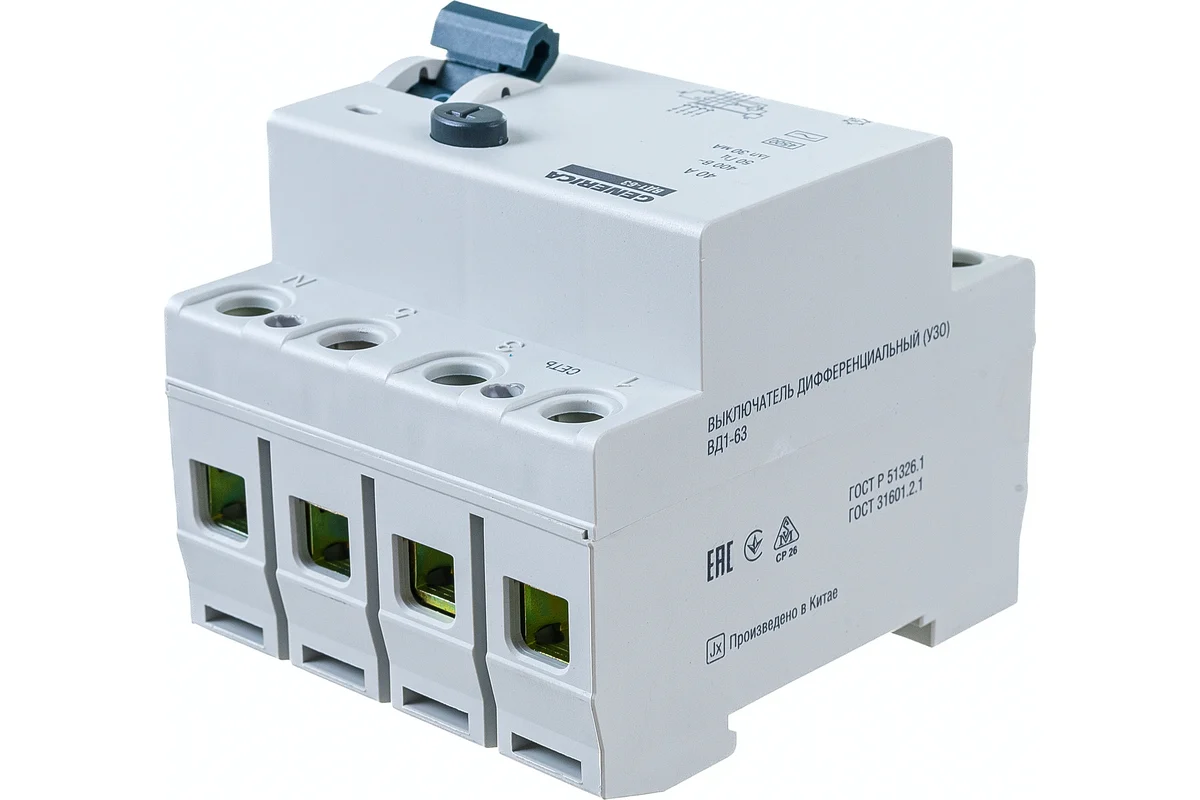 Технические характеристики GENERICA УЗО ВД1-63 4Р 40А 30мА MDV15-4-040-030