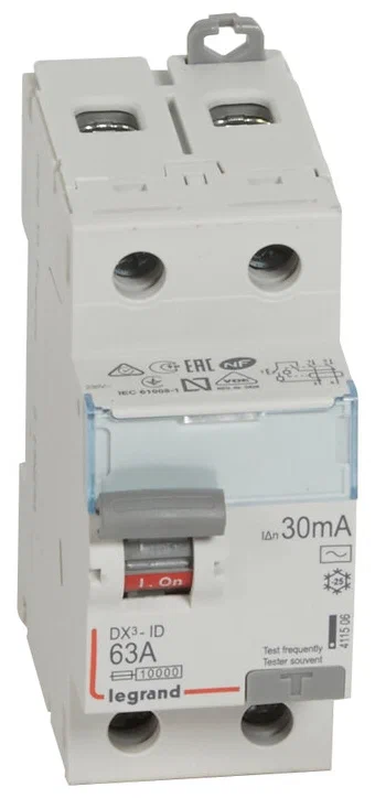 Технические характеристики Legrand DX3 2П 63А 30мА-AC 411506