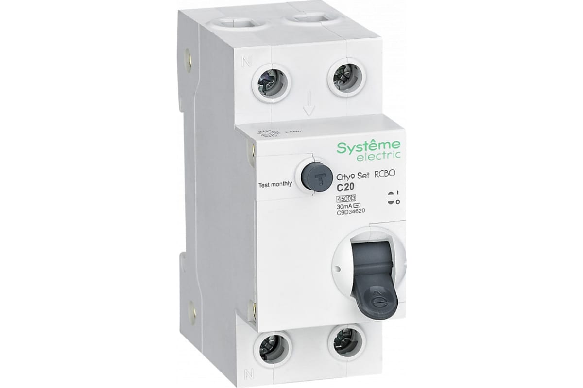 Технические характеристики Systeme Electric City9 set авдт 1p+n с 20а 4.5ka 30ма тип-aс 230в C9D34620