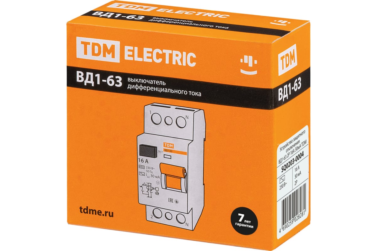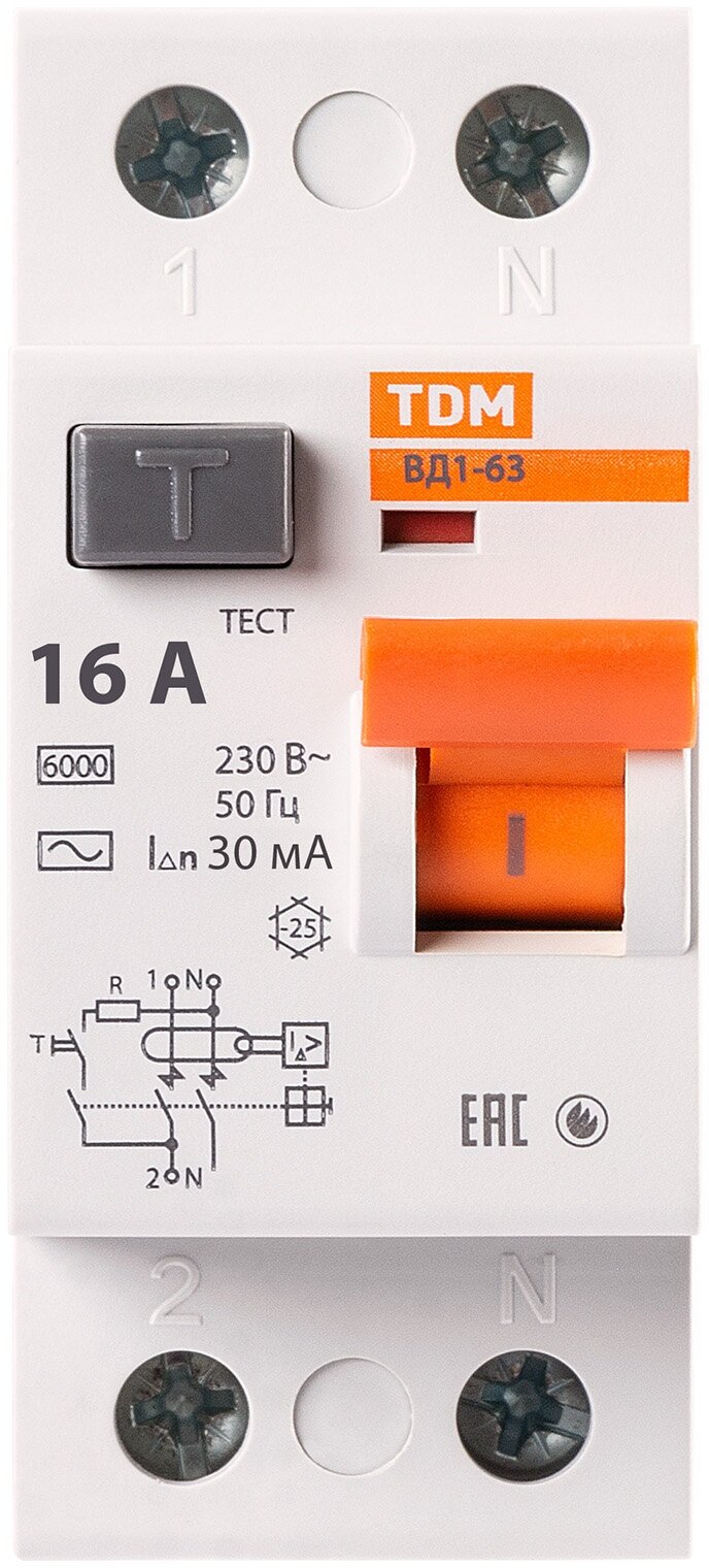 Технические характеристики TDM ВД1-63 2Р, 16 А, 30 мА SQ0203-0004