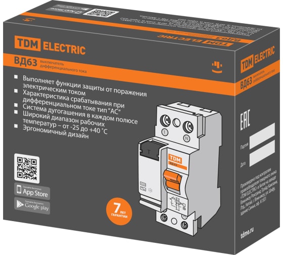Преимущества TDM ВД63 2Р 16А 30мА SQ0220-0001