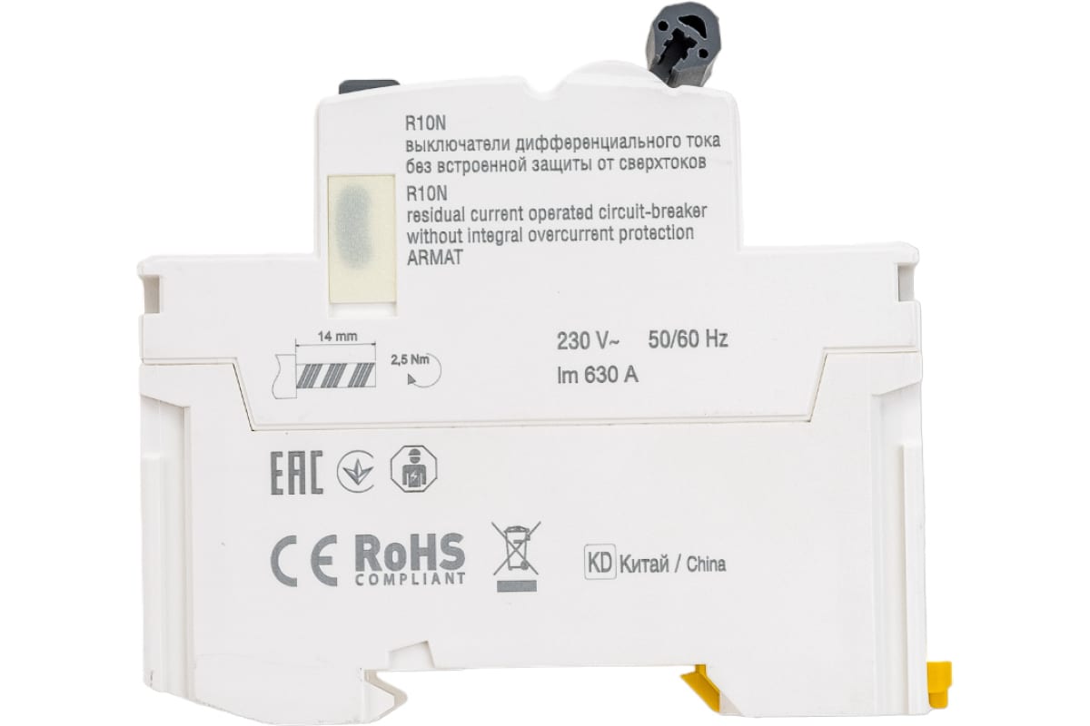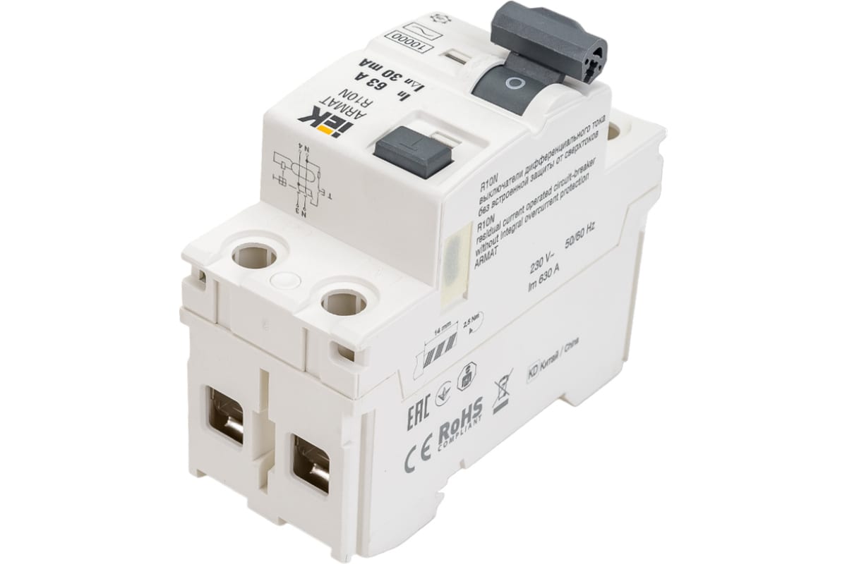 Технические характеристики IEK ARMAT R10N 2P 63А 30мА тип AC AR-R10N-2-063C030