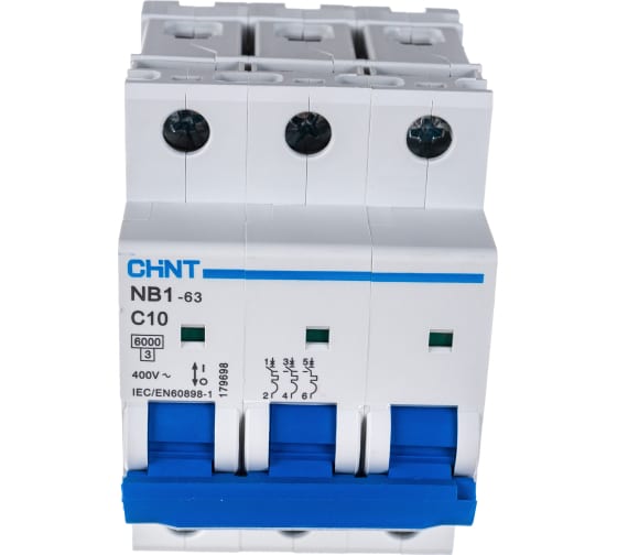 Технические характеристики CHINT NB1-63 3P, 10A, 6кА, характеристика C 179698