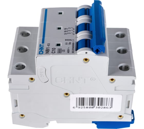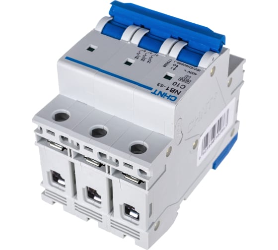 Автоматический выключатель CHINT NB1-63 3P 10A 6кА характеристика C 179698 используется для защиты распределительных и групповых цепей от перегрузок и короткого замыкания. Применяется во вводно-распределительных щитах жилых и административных зданий или в промышленности.