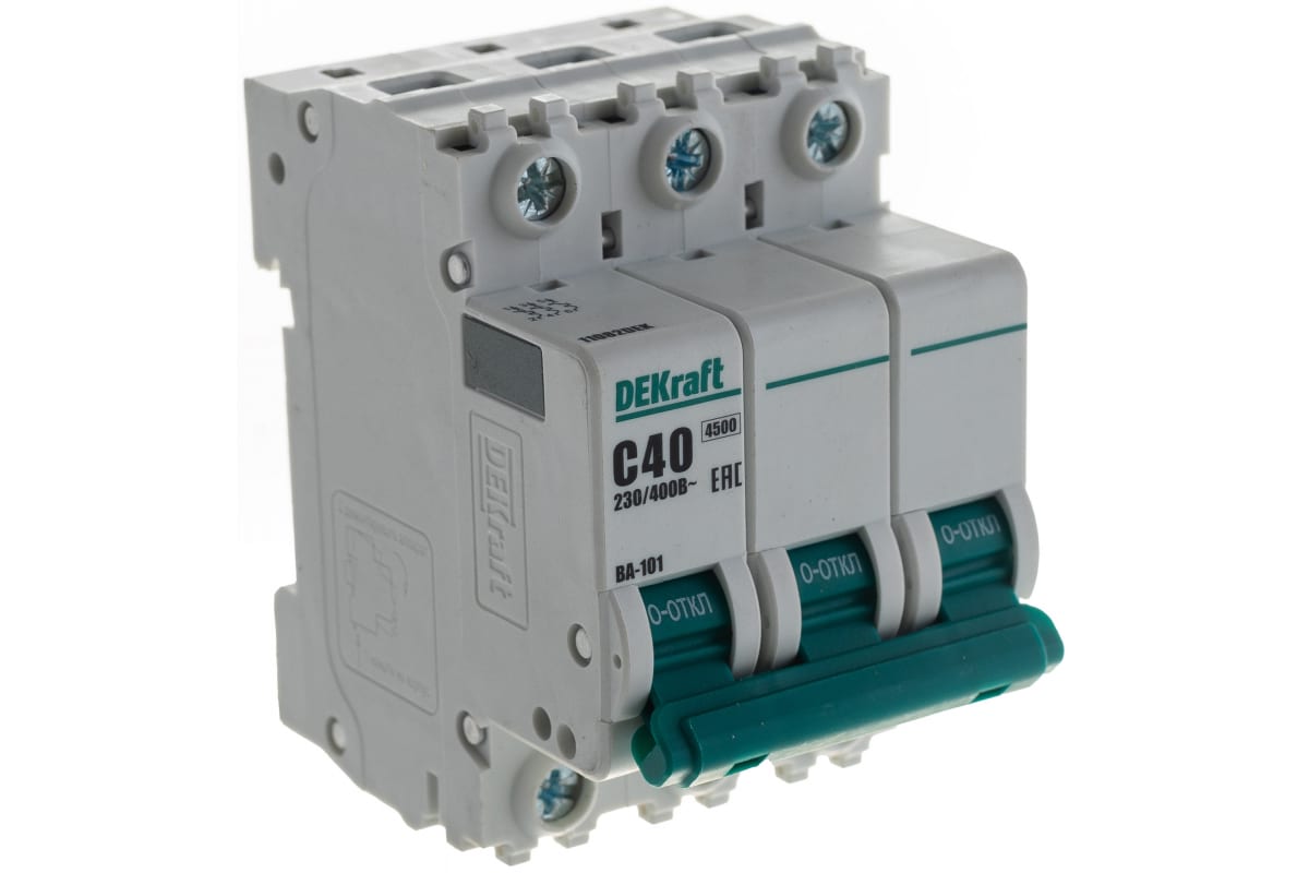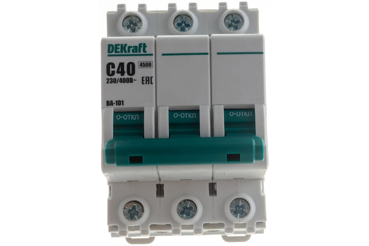 Технические характеристики DEKraft ВА101-3P-040A-C 3п 40А C 4.5кА 11082DEK 121924