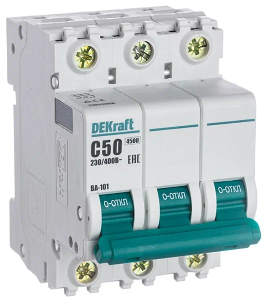 Технические характеристики DEKraft ВА101-3P-050A-C 3п 50А C 4.5кА 11083DEK 121925