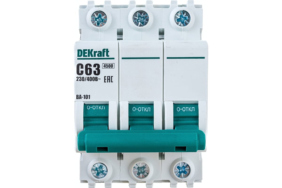 Технические характеристики DEKraft ВА101-3P-063A-C 3п 63А C 4.5кА 11084DEK 121926
