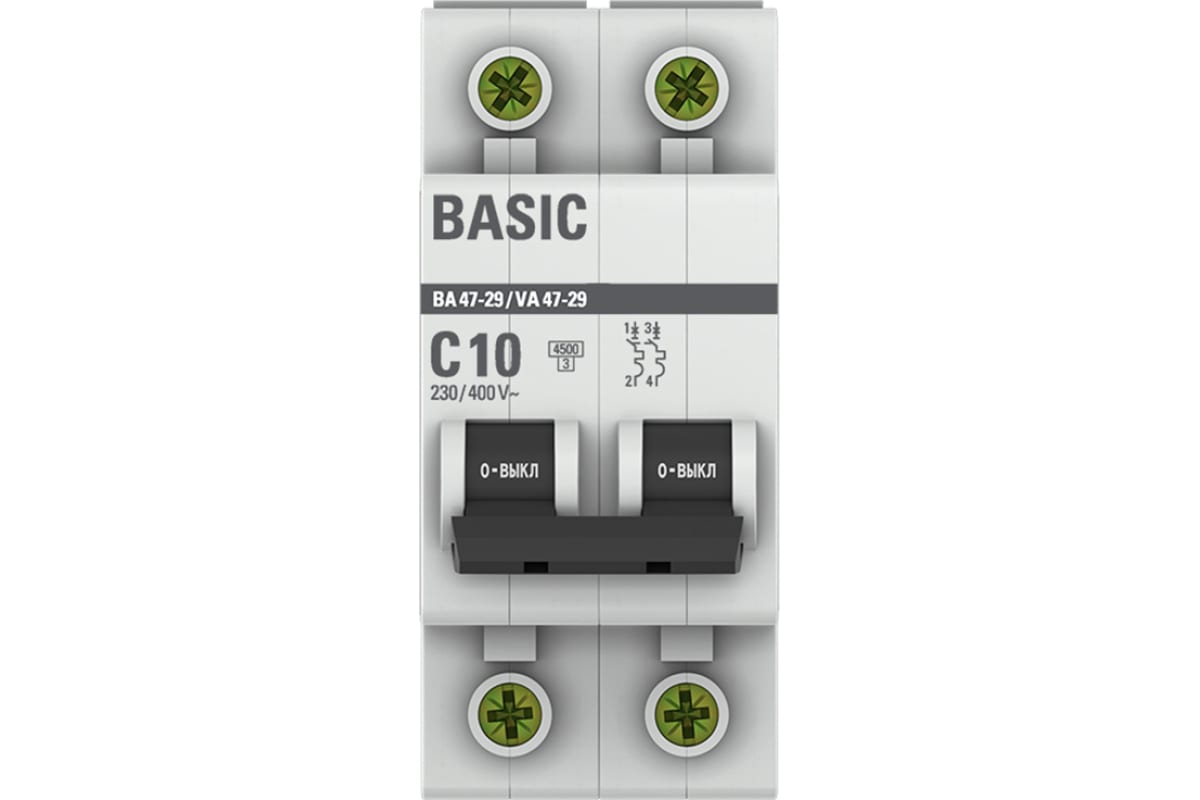 Технические характеристики EKF Basic ВА 47-29 2P 10А (С) 4,5кА mcb4729-2-10C