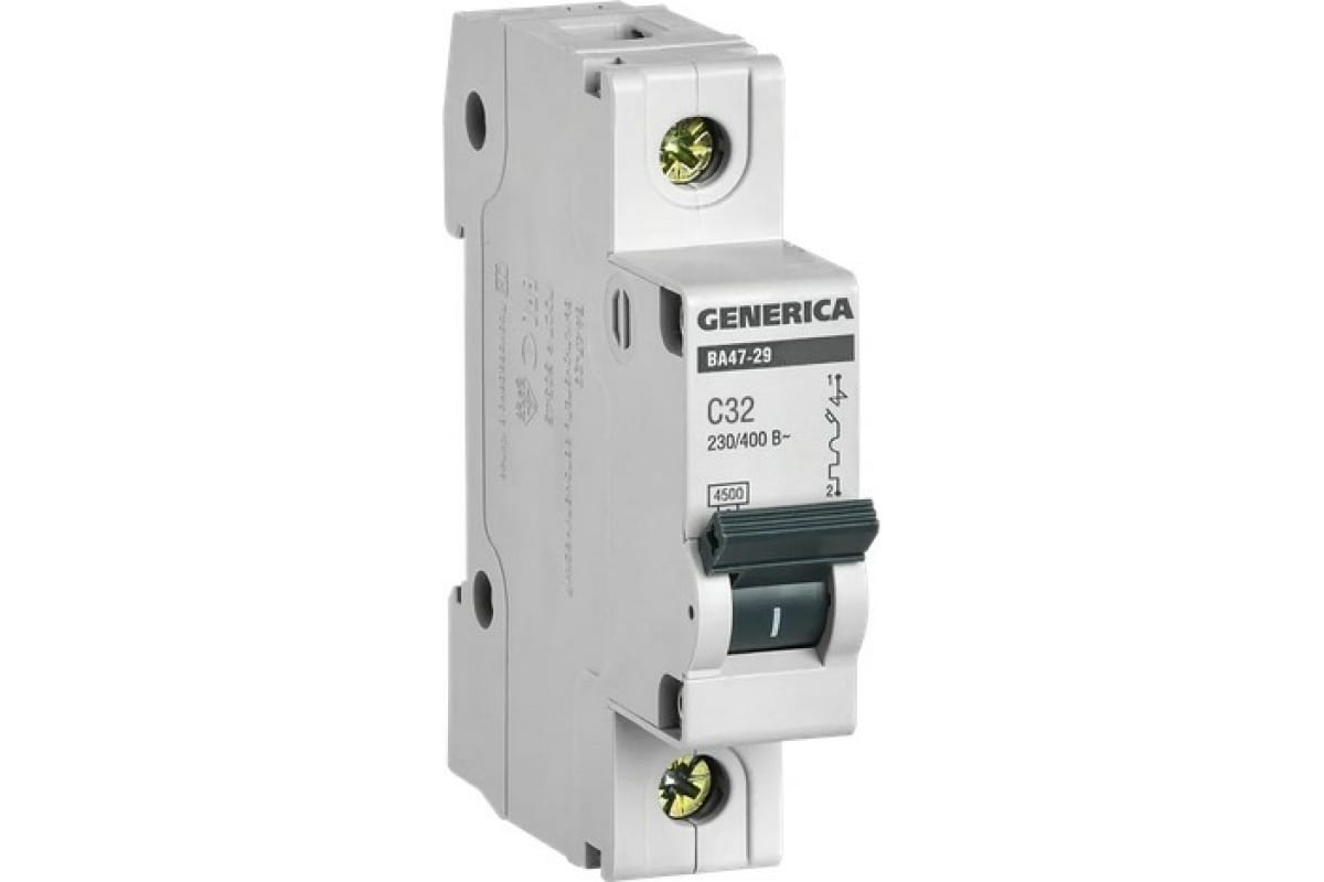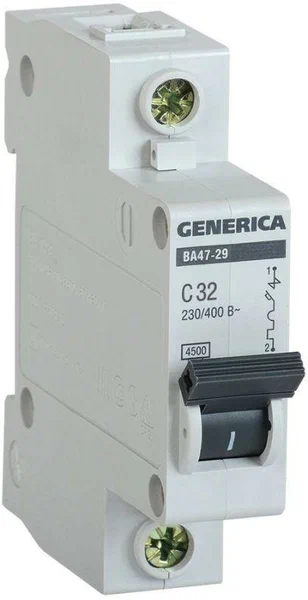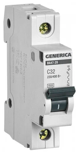 Технические характеристики GENERICA ВА47-29 1Р 32А 4,5кА х-ка С MVA25-1-032-C